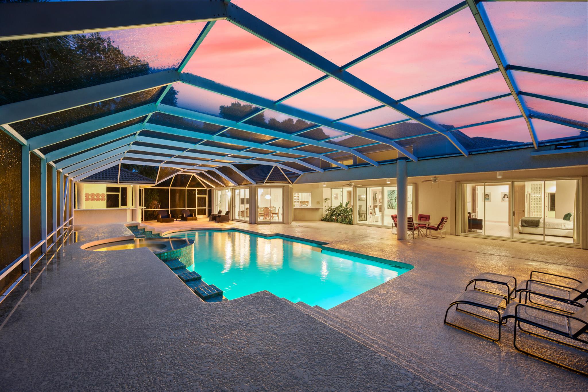 Located in one of West Palm Beach's premier guard-gated club communities, this beautiful Breakers West custom home offers almost 3,300 AC living area with 3 Bedrooms+Office/possible 4th Bedroom, 3 Full & 2 Half Baths and 2-car+golf cart garage. This home is situated on .47 acre overlooking the 13th fairway of Mayacoo Lakes Golf Course. As you step inside, the spacious Great Room will impress you with its 16ft ceilings, marble flooring, wet bar in the Dining Area, and floor-to-ceiling sliding doors with transom windows all opening to the expansive screened patio with gorgeous pool and spa. The Kitchen features marble floors, granite counters, Sub-Zero refrig and a convenient pass-thru window to the patio for easy entertaining. Off the kitchen