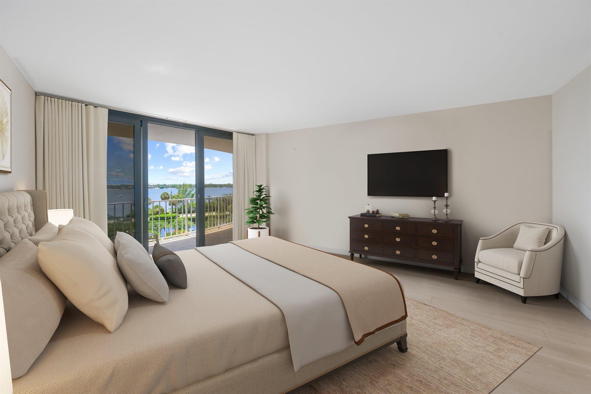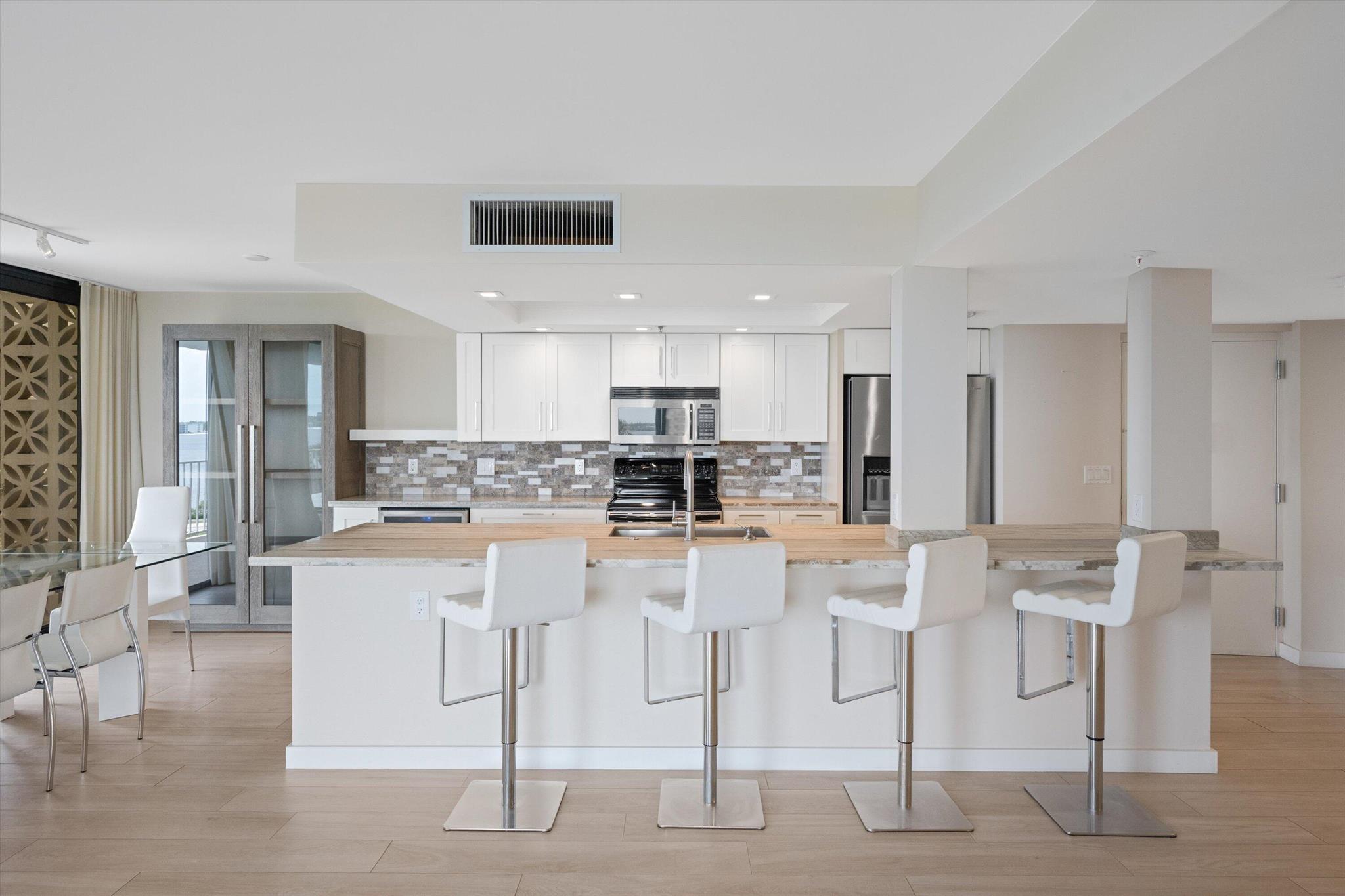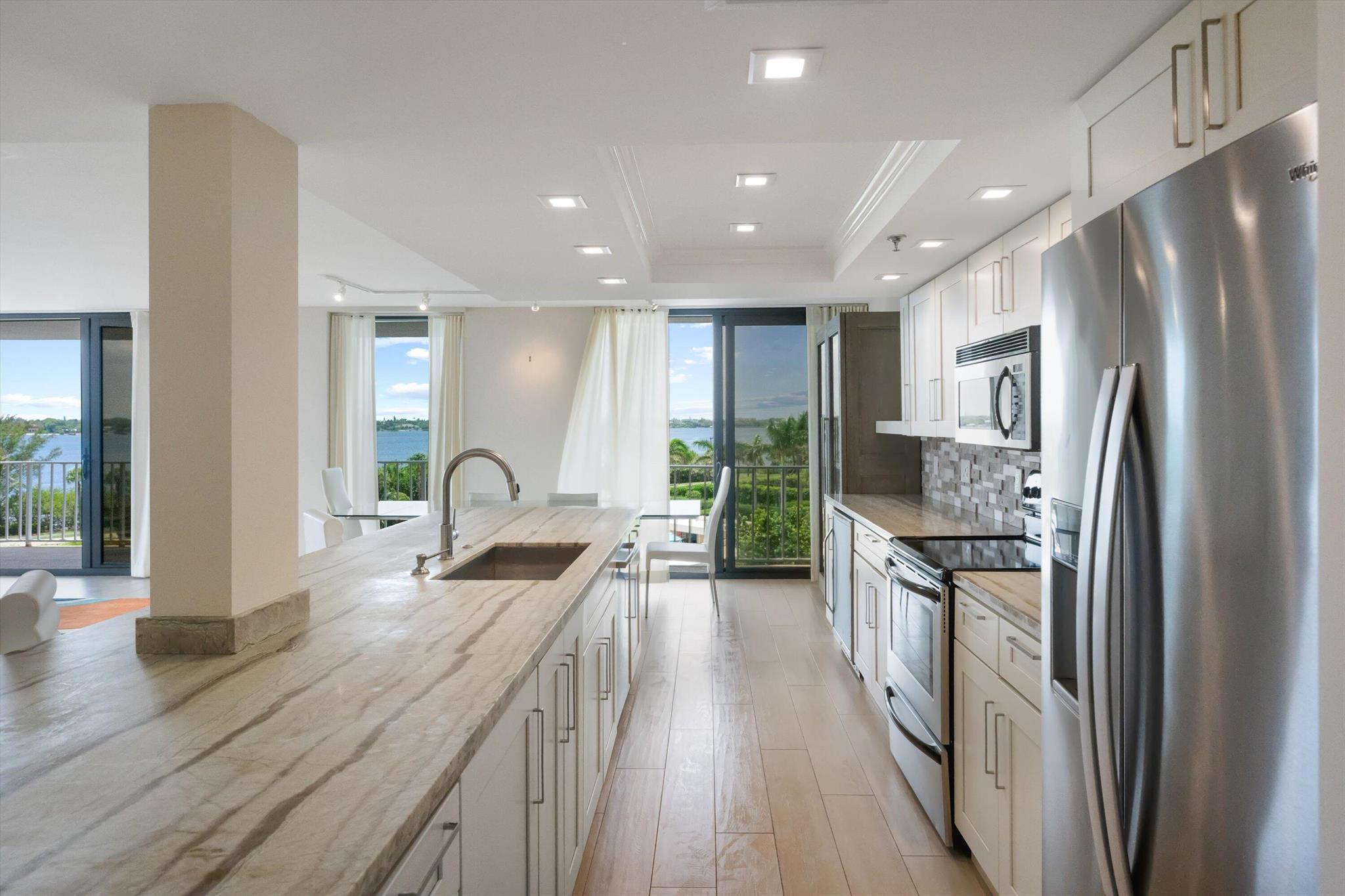 Experience the pinnacle of coastal luxury in this beautifully renovated 2-bedroom, 2-bath condo in the prestigious Atriums of Palm Beach. With panoramic Intracoastal views and stunning sunsets from every room, this residence offers a lifestyle of serenity and sophistication.Enjoy an open-concept layout featuring wood-look porcelain tile flooring, a chef's kitchen with marble countertops, stainless steel appliances, and a wine refrigerator--all designed for effortless entertaining. The expansive living space flows onto a wraparound balcony, accessible from every room, creating a seamless indoor-outdoor experience.