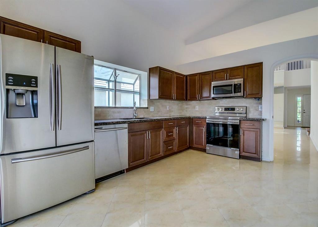 TOTALLY REMODELED, with a newly painted exterior and interior , BRAND NEW ROOF . NEW AC UNIT, NEW KITCHEN CABINETS , NEW APPLIANCES AND granite countertops Water view from master bedroomKitchen, Living room, Vaulted ceilings in master bedroom and Living room and dinning room. Two minutes to all shopping venues 15 minute drive to Palm Beach Ocean, two Champion 18 hole golf coursesBreakers West CC. and Mayacoo Golf Course